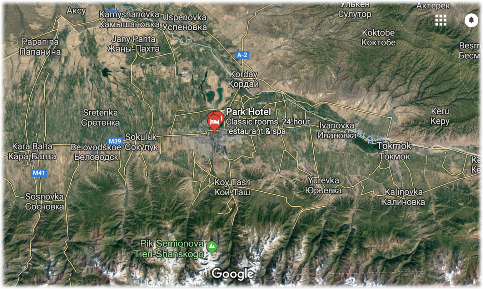 Bishkek Map Zoom with Mountains